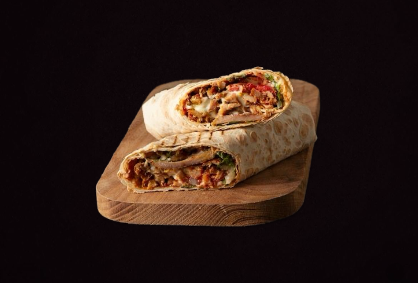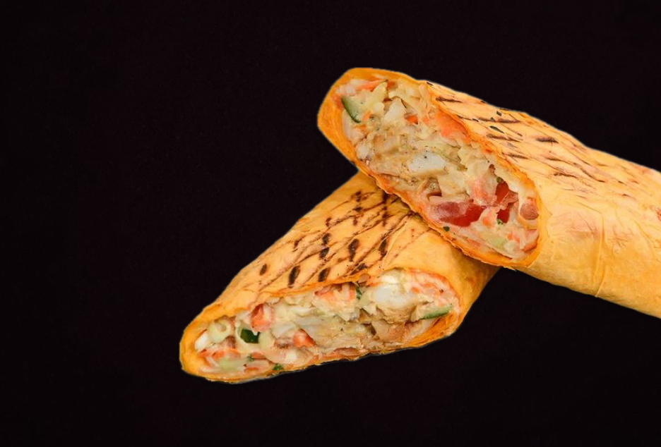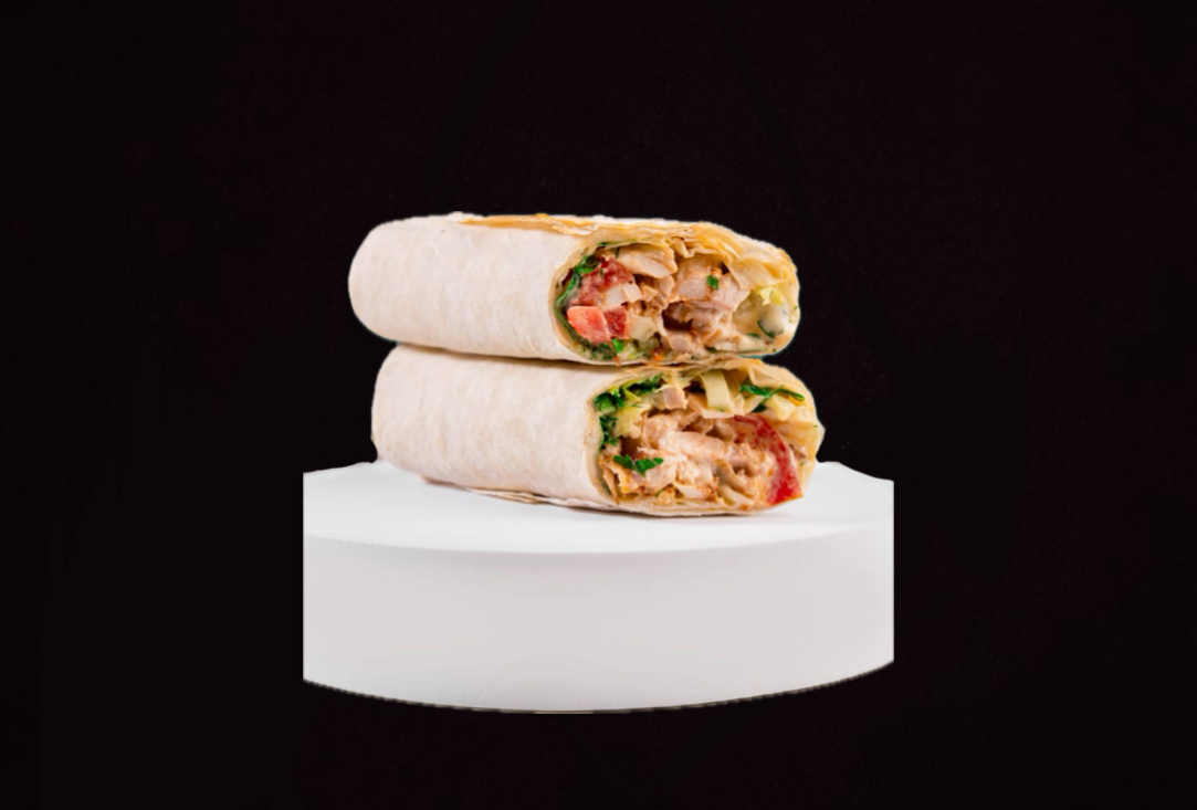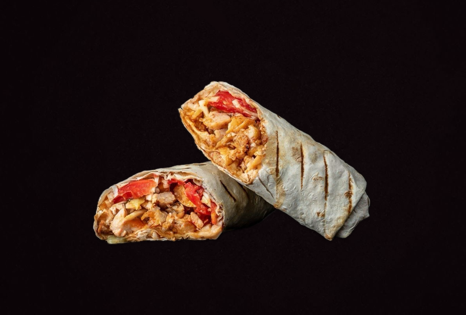 Тонкий лаваш, сочное поджаристое филе цыплёнка, свежий хрустящий огурец, огурчик маринованный, спелый томат, тоненькая капуста, соус фирменный, соус острый, перчик халапеньо